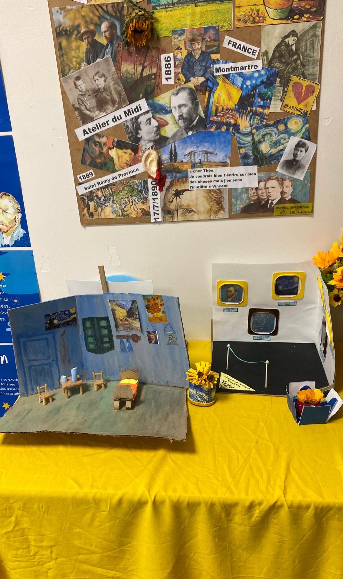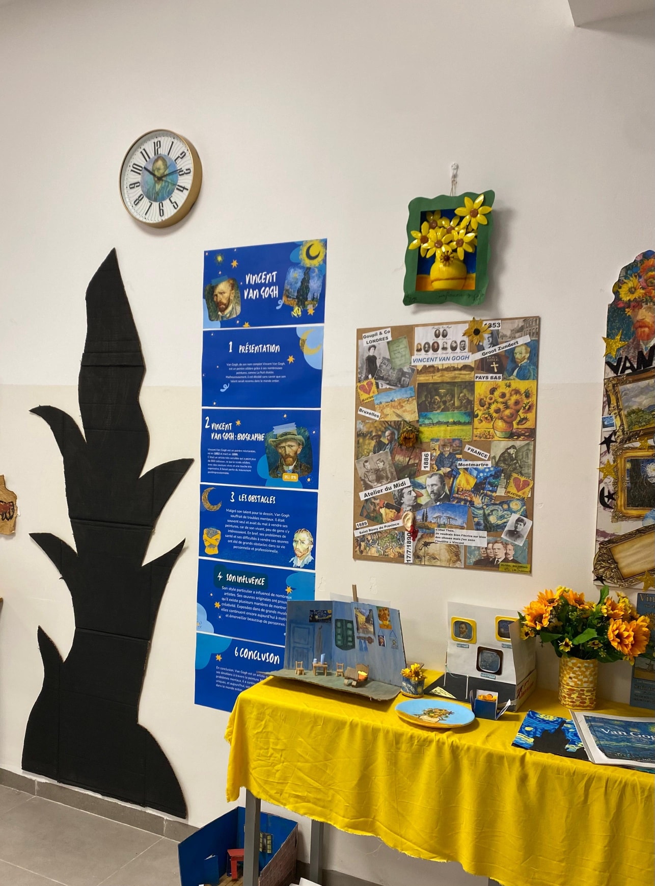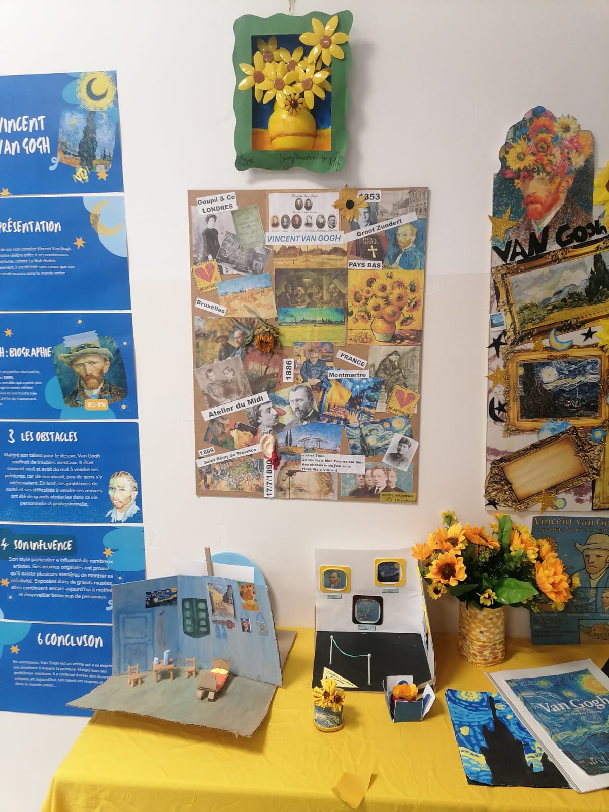 Les productions ont ensuite été exposées afin de mettre en valeur le travail et l’investissement des élèves, donnant naissance à un véritable petit musée inspiré de l’œuvre de Van Gogh.