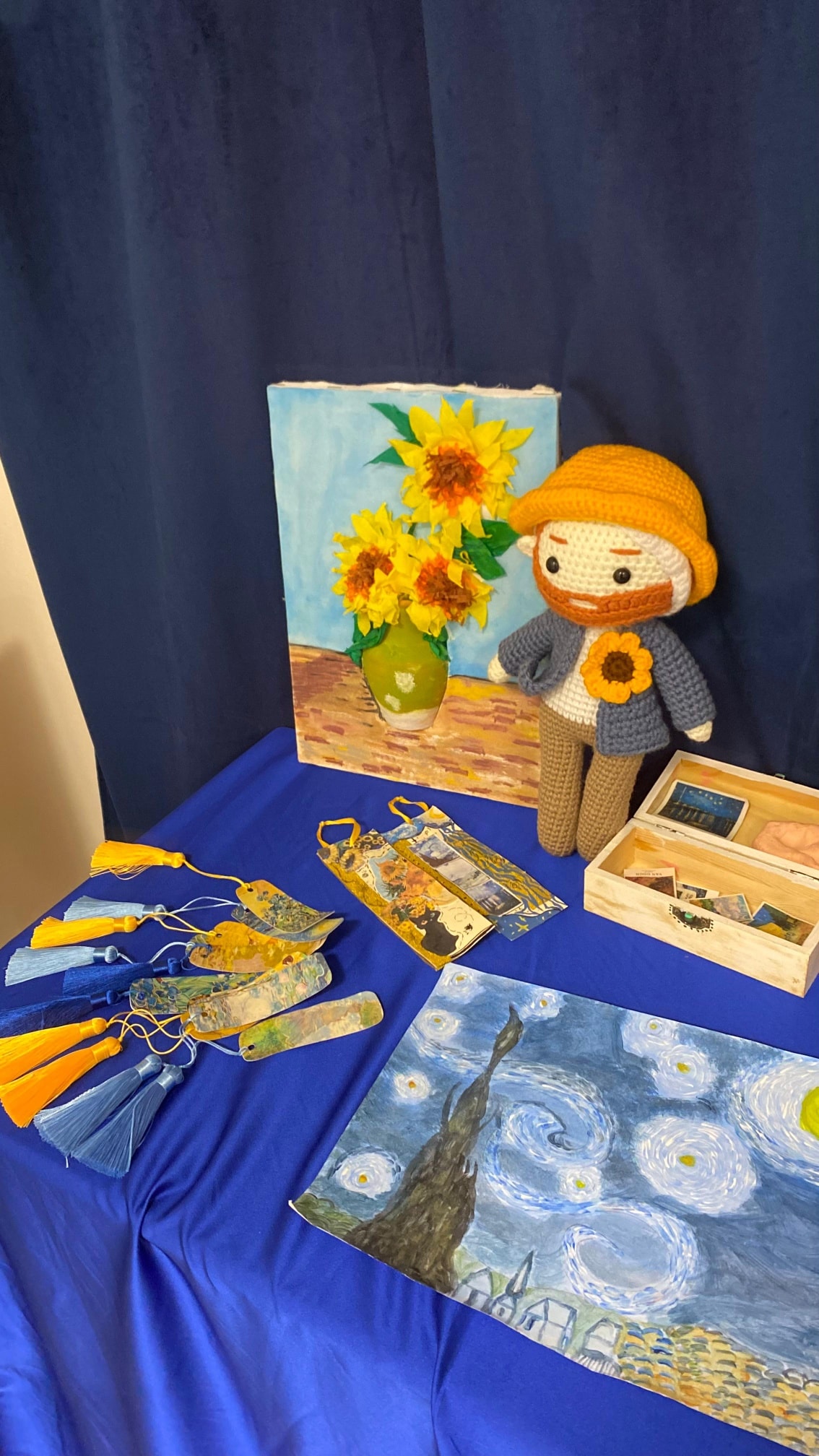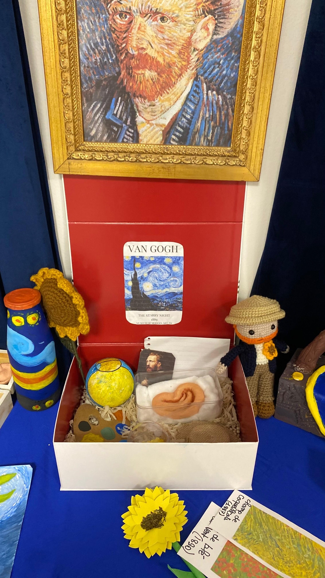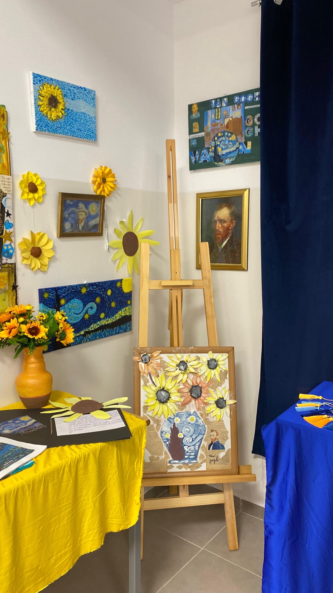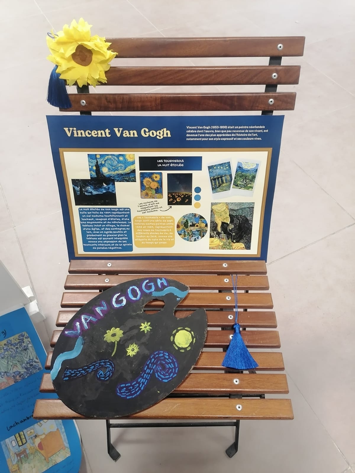 Les productions ont ensuite été exposées afin de mettre en valeur le travail et l’investissement des élèves, donnant naissance à un véritable petit musée inspiré de l’œuvre de Van Gogh.